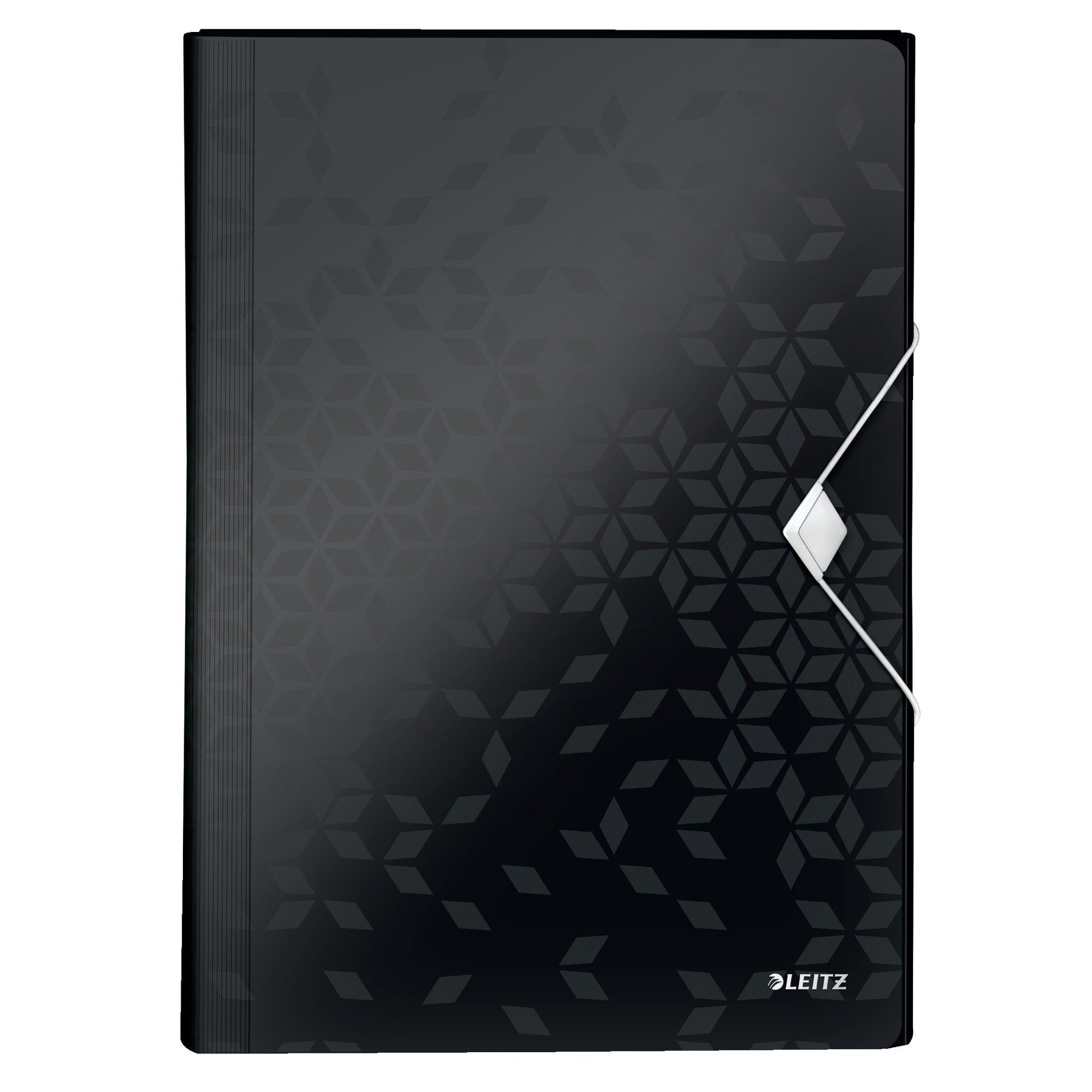 6 compartimente extensibile cu index, pentru identificarea rapida a continutului. Un compartiment frontal fix, pentru stocarea diverselor documente, accesorii sau a caietului de notite. Inchidere cu banda elastica, pentru transportul in siguranta al documentelor. Se completeaza perfect cu celelalte produse din gama Leitz WOW.