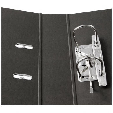 Biblioraft confectionat din carton rigid, plastificat cu folie din polipropilena. Mecanism fabricat din inox metalic, prevazut cu orificiu de prindere.