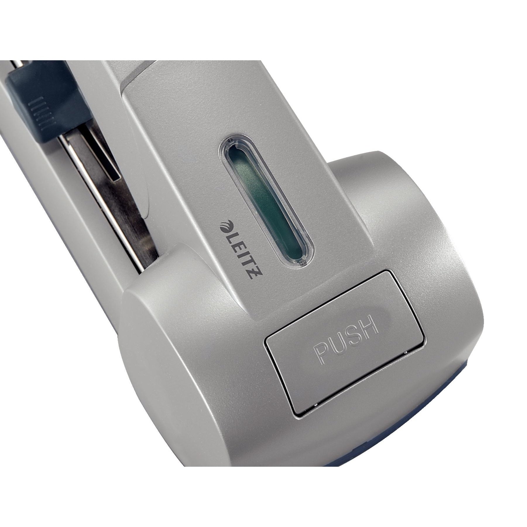 Capsator de mare capacitate, care datorita tehnologiei folosite, asigura o capsare plata de pana la 120 de coli. Chiar daca numarul de coli este mai mic de 120, capsarea este la fel de eficienta. In comparatie cu capsatoarele traditionale asigura o economie de spatiu de 30% in bibliorafturi sau caiete mecanice. Caracteristici: Capacitate de capsare: 120 coli (80g) Corp din material plastic Indicator pentru numarul de capse ramase Spatiu suplimentar pentru capse de rezerva Capsare: plata Pentru capse 23/15XL. 1000 capse 23/15XL incluse. Adancimea de capsare: 56 mm. 10 ani garantie cu conditia utilizarii capselor Leitz.