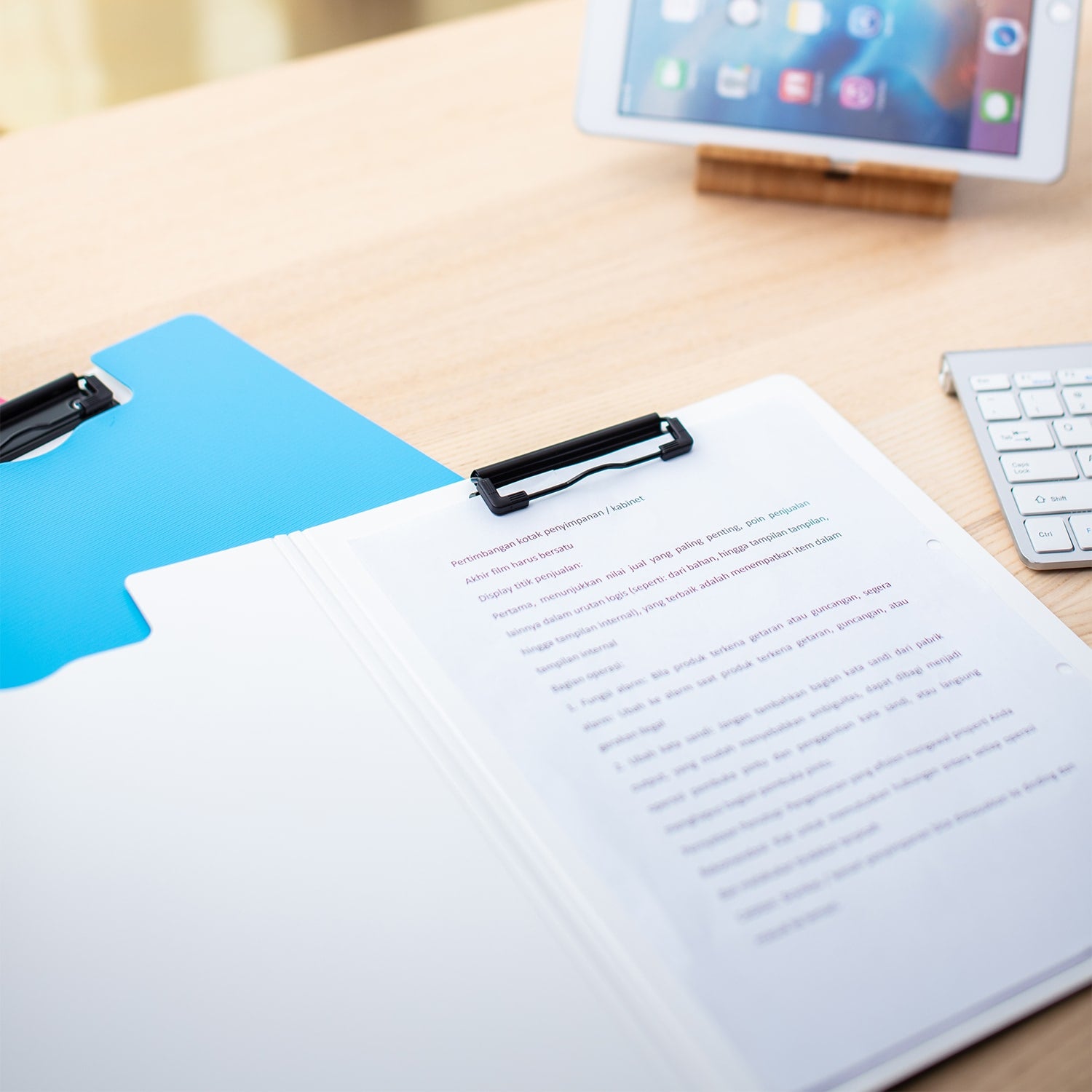 Clipboard simplu confectionat din carton acoperit cu material plastic, dotat cu clema metalica puternica.